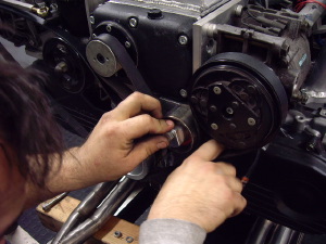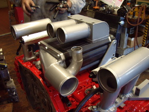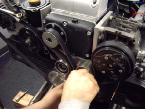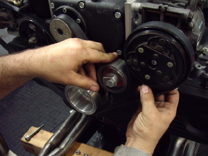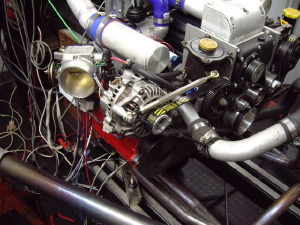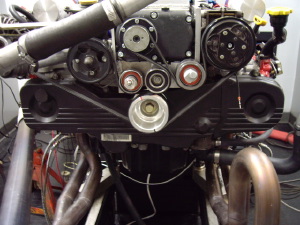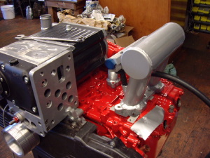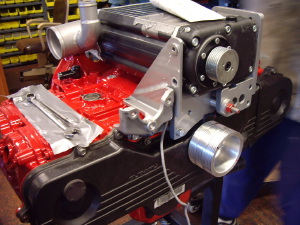 | MORE FABRICATION AND FITMENT OF TUBING, PULLEYS AND BRACKETS. INITAL SETUP ON ENGINE DYNO, FINAL ASSEMBLEY OF PULLEYS, BELTS, WATER TO AIR INTERCOOLER, FUEL LINES AND FUEL PRESSURE REGULATOR BEFORE INITIAL START UP AND BREAK-IN. | ||