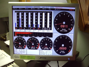 | THE DYNO WILL BE ABLE TO MEASURE MANY VARIABLES INCLUDING THE TEMPERATURE OF THE WATER IN AND OUT OFTHE WATER TO AIR INTERCOOLER. THIS IS IMPORTANT BECAUSE THE MORE EFFECTIVE THE COOLING OF THE INTERCOOLER THE HIGHER THE BOOST WE CAN RUN. SUPERCHARGERS MAKE A LOT OF HEAT, SO WE WANT TO KEEP IT VERY COOL. WATER TO AIR WILL BE MORE EFFECTIVE THAN AIR TO AIR INTERCOOLERS AND NOT HAVE HEAT SOAK WHEN THE CAR IS STOPPED. | ||