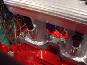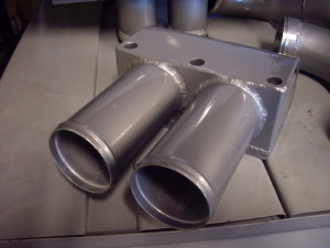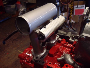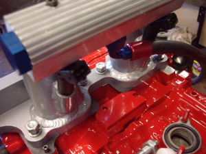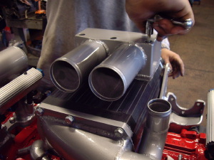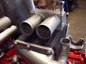 | BECAUSE OF THE CENTER MOUNTING OF THE SUPERCHARGER ALL WATER LINES HAD TO BE MOVED AND PARTS FABRICATED. | ||