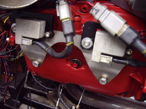 | TO PROVIDE ENOUGH JUICE FOR THE PLUGS STi INDIVIDUAL COIL PACKS WERE ADAPTED AND CUSTOM COIL BRACKETS AND CONNECTORS WERE MADE. | ||